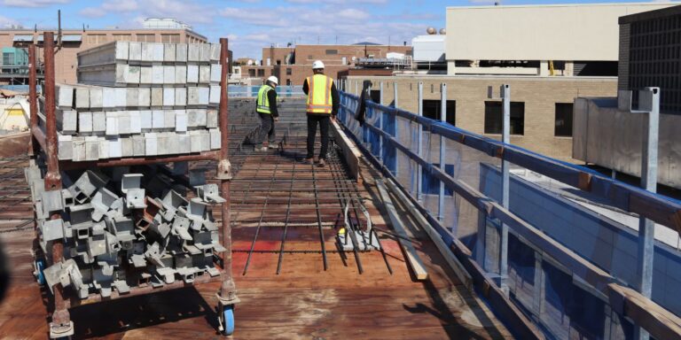 The garage repairs included a comprehensive structural rehabilitation of the deteriorated parking decks and selective replacement of steel beams and girders.