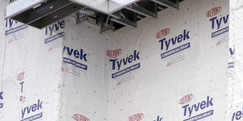 Examples of the Range of Weather-Resistive Barrier Choices for Multi-Family Residential Construction – From Left to Right: House-Wrap (Tyvek), Sheet Applied Membranes, and Fluid-Applied Membranes