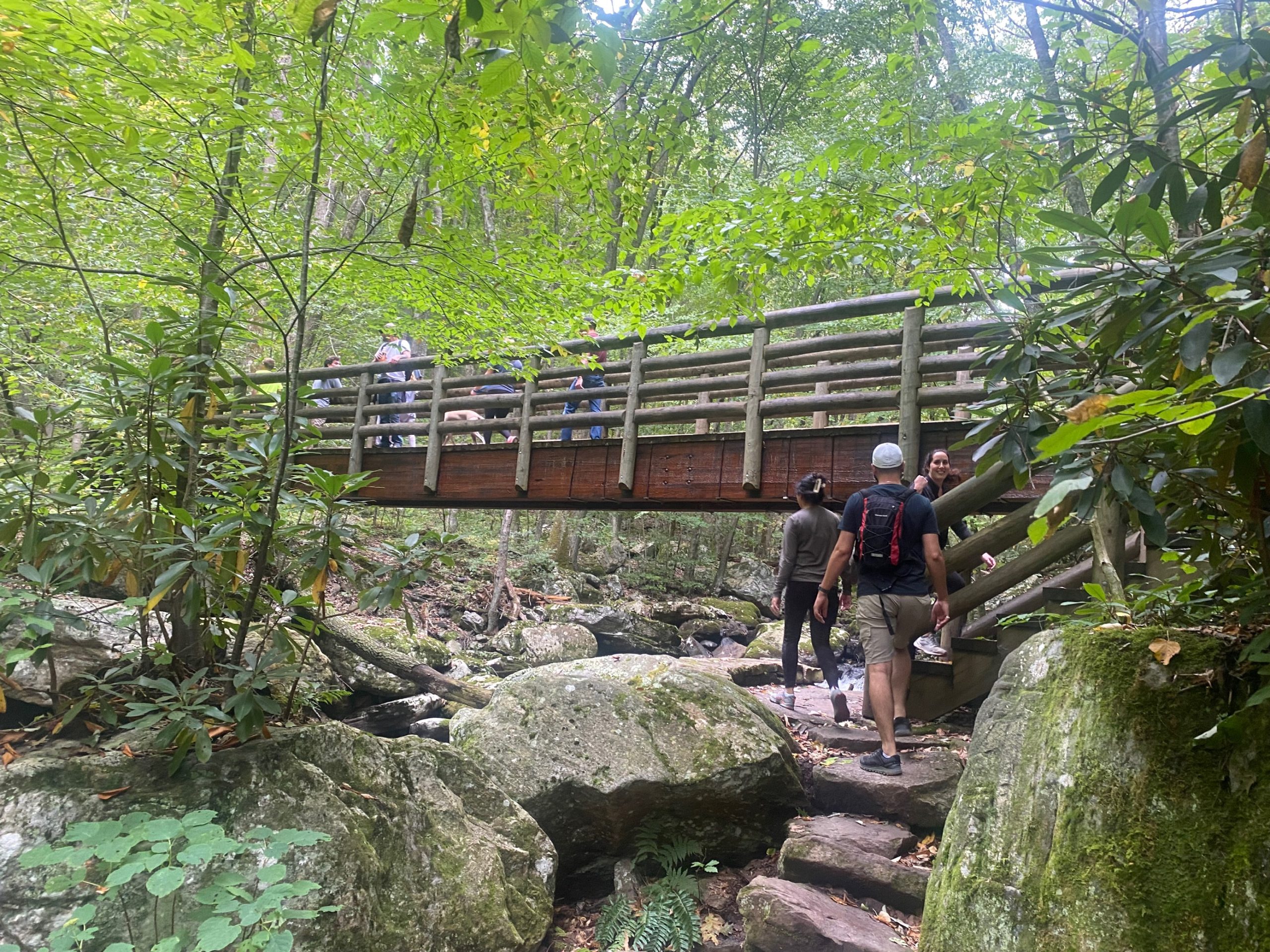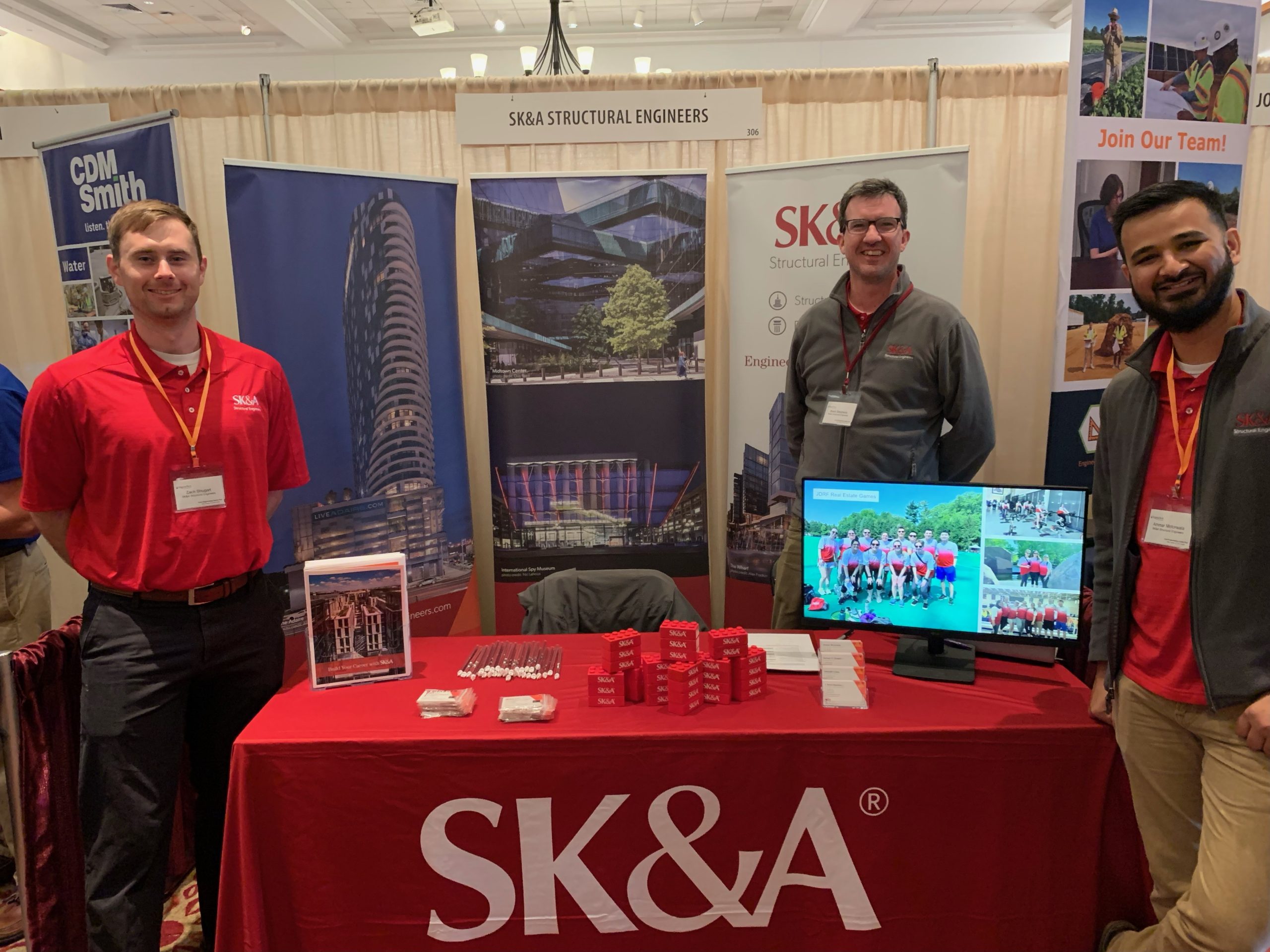 For added smiles at your next Career Fair table, go on a hike in a beautiful destination the day before! Our SK&A team members Zachary Shugart, EIT, Gabi Cohen, and Ammar Motorwala, PE, together with his wife Tasneem, ventured out to Cascade Falls in Pembroke, Virginia for a Sunday hike before the next day’s career fair. They were rejuvenated and refreshed upon joining SK&A Sr. Principal Brent Stephens, PE at the Virginia Tech Career Fair on Monday morning. Plus, they had some great pictures to share with the young recruits, saying “This is the kind of fun we’ll have when you join our team!”